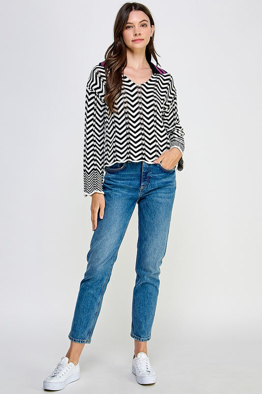 RUFFLE DETAIL STRIPED HENLEY TOP