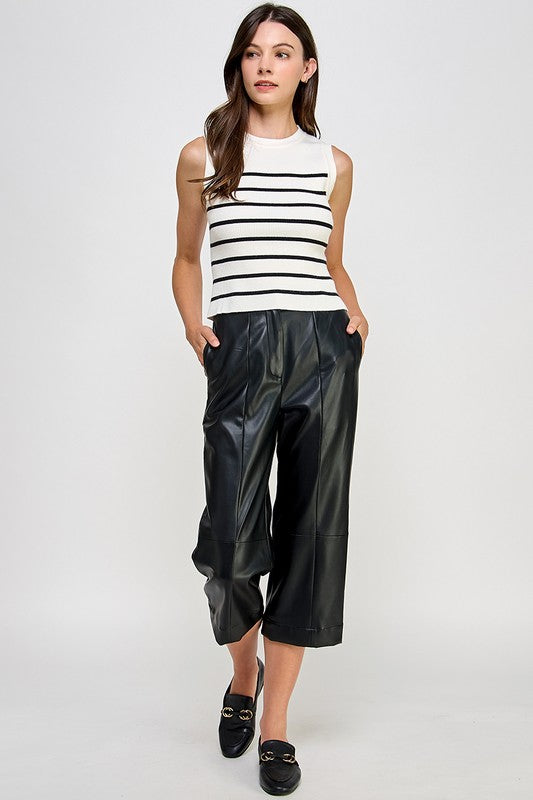 RUFFLE BUTTON-DOWN PLEATHER SKIRT