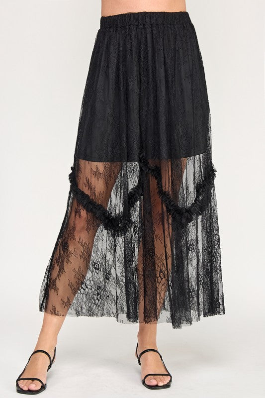 TIERED LACE MIDI SKIRT