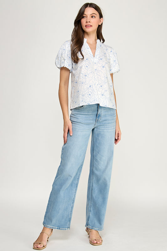 SPLIT NECK PUFF SLEEVE BLOUSE