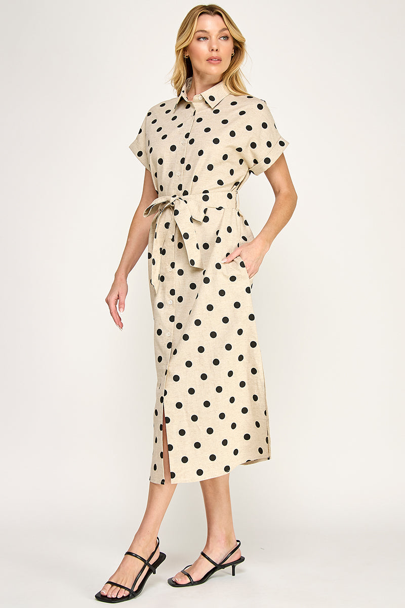 LARGE POLKA DOT BUTTON DOWN LINEN DRESS