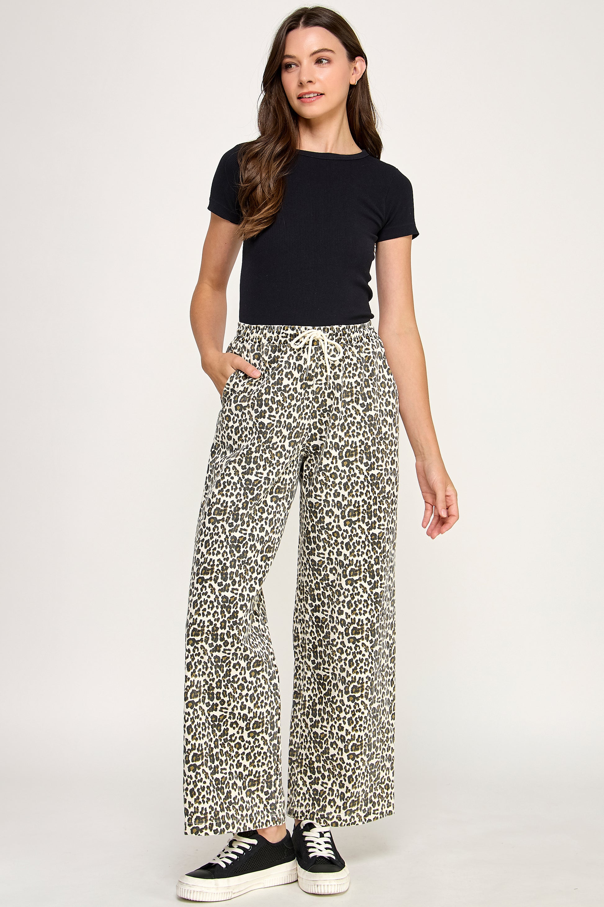 THE LEOPARD DRAWSTRING PANTS BRING A BOLD AND TRENDY TOUCH TO YOUR EVERYDAY STYLE.